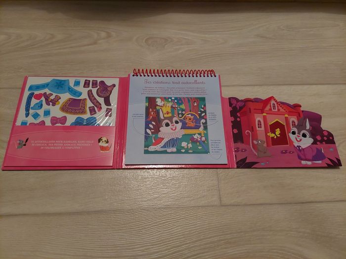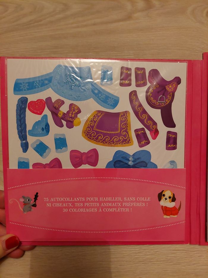 Joli livre avec autocollants et coloriages. Permet l'autonomie, sans ciseaux ni colle. Neuf, jamais déballé.
