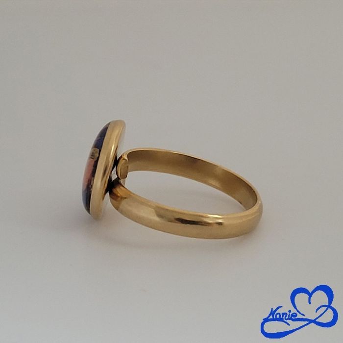 Bague ajustable ronde dorée,  orange et bleu - photo numéro 1
