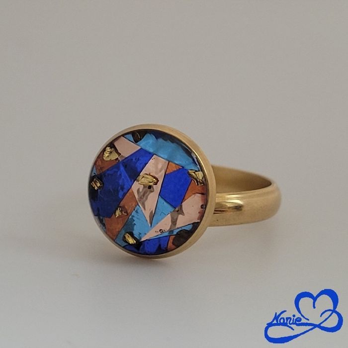 Cette bague Cubisme bleu est unique et fait main. #creation #faitmain #bijoux #bijouxfaitmain #bijouxresine #bijouxrésine #resineepoxy #pendentif #collier #bague #paillettes #bagueronde #ronde #motif #bagueenresine #baguefaitmain #resinart #resindesign #resinart_ideas #resinlover #resinepoxy #creationfaitmain #resinecreations #resintray #ajustable #bagueajustable #baguedoree #doree