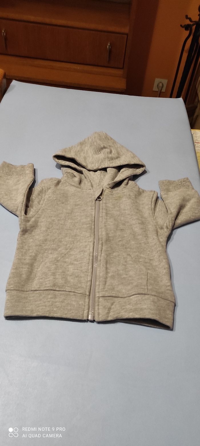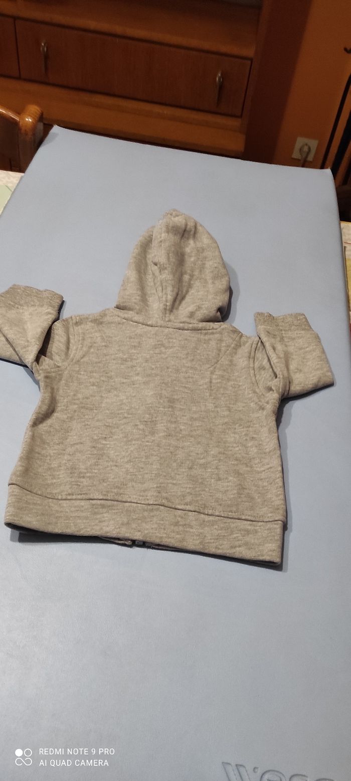 Veste de survêtement chaude, une tâche jaunâtre en haut de la veste voir la dernière photo sinon bonne état porté quelques fois, taille 6 mois