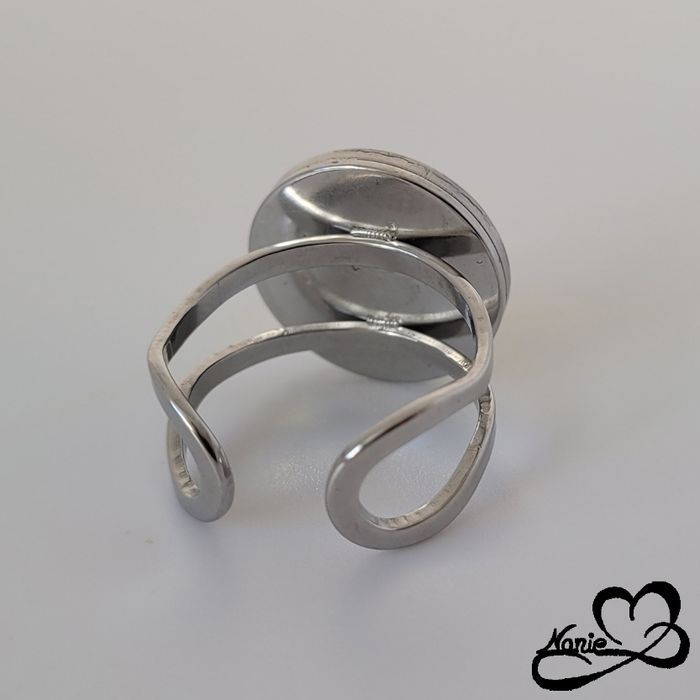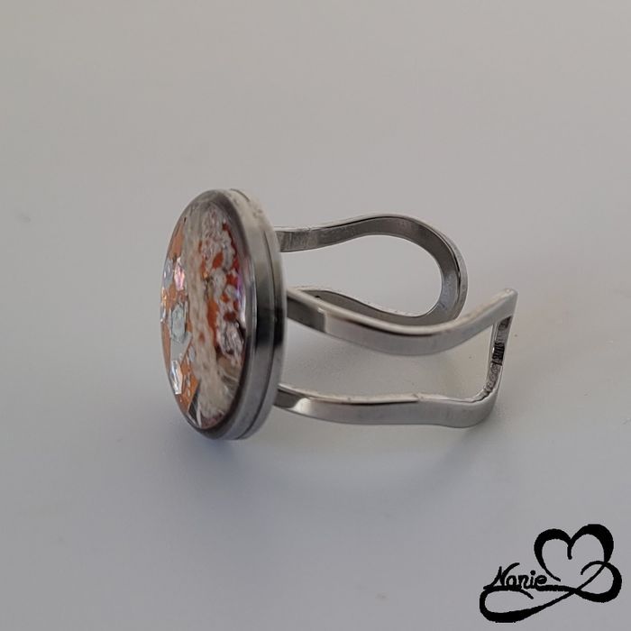 Bague ajustable argentée et orange ronde - photo numéro 1