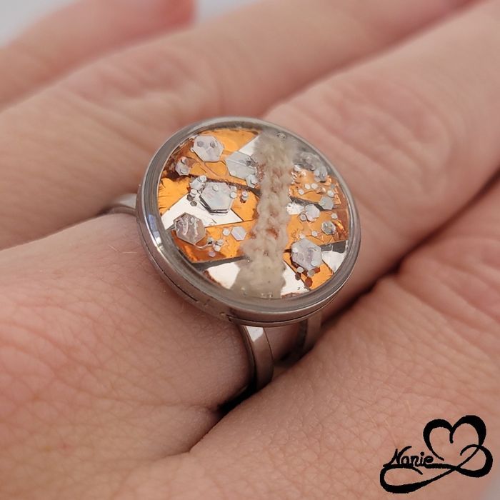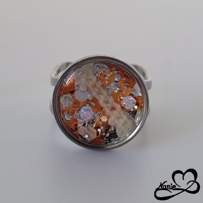 Cette bague Composition est unique et fait main. #creation #faitmain #bijoux #bijouxfaitmain #bijouxresine #bijouxrésine #resineepoxy #pendentif #collier #bague #paillettes #bagueronde #ronde #motif #bagueenresine #baguefaitmain #resinart #resindesign #resinart_ideas #resinlover #resinepoxy #creationfaitmain #resinecreations #resintray #ajustable #bagueajustable #bagueorange #bagueargentee #argentee