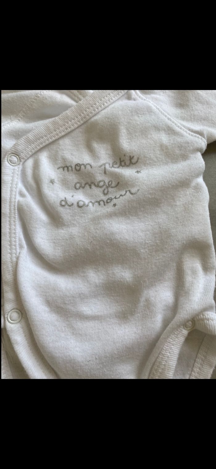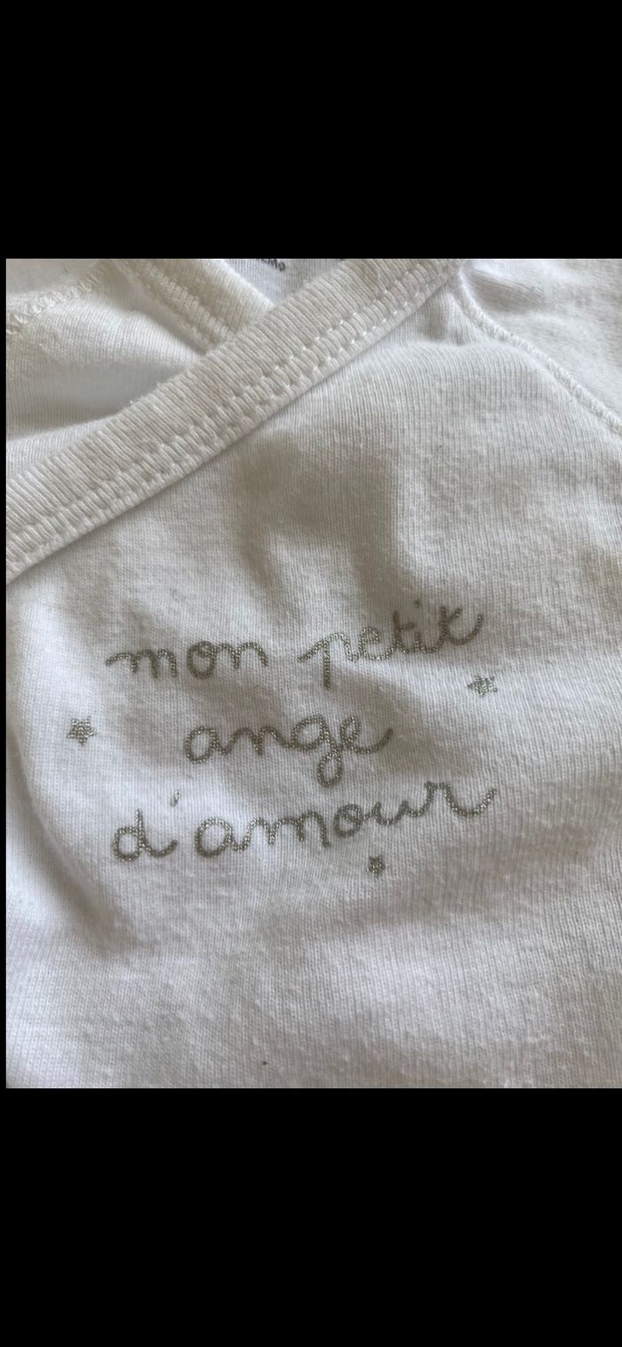 Porte, três bon état. Body ventral super pratique pour la naissance car ça s'ouvre vers l'avant. Pas besoin de le passer par la tête car on a peur de leur faire mal. N’hésitez pas à me suivre car encore beaucoup de vêtements fille, des chaussures en cuir, des chaussons… (du 1 mois au 8 ans), des vêtements garçon (du 1 au 12 mois pour le moment ). Maison non-fumeurs et sans animaux même si je les adore. Il n'y aura pas de poils ou d'odeur désagréable. Vous recherchez quelques choses, demandez moi. Je réponds très rapidement. Bon shopping 😊.