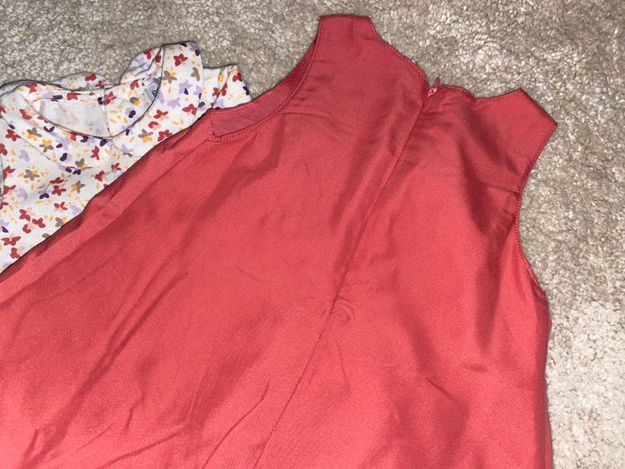 Ensemble robe + t-shirt à motifs de couleur #corail #corailrouge #fleurs en #taille6mois en parfait état #neuf #neufsansétiquette
