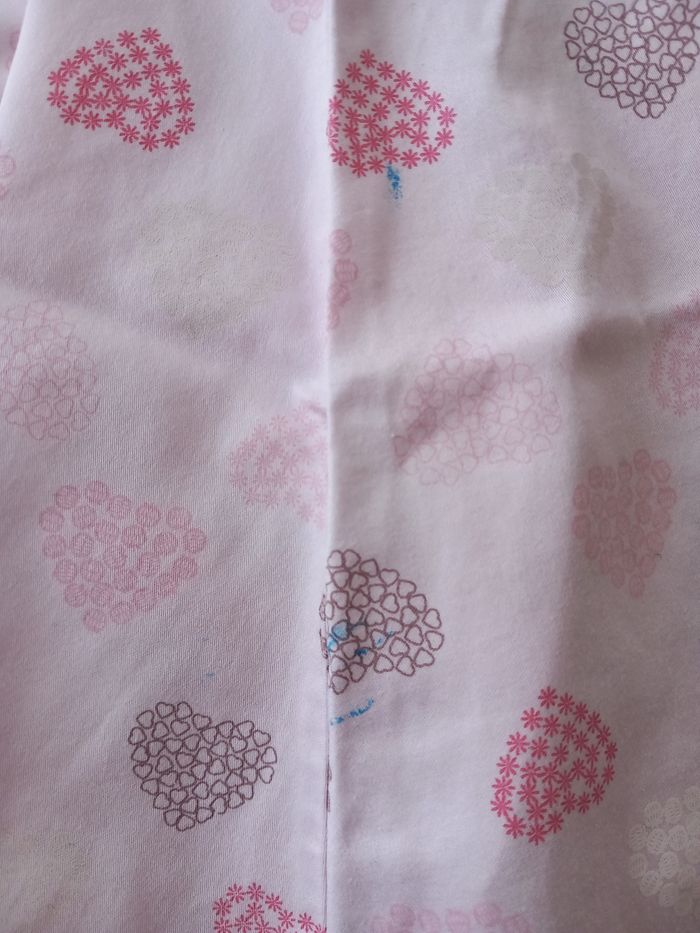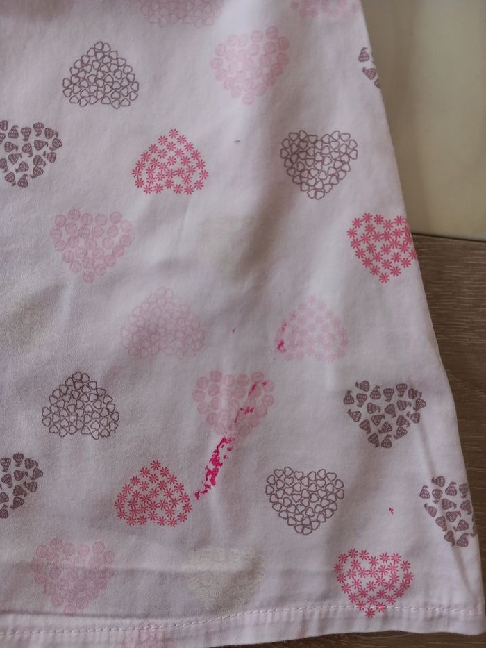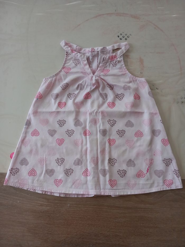Robe rose légère à motif de cœur Pression dans le dos 2 traces de peinture rose et bleu (voir photos) Taille 18 mois