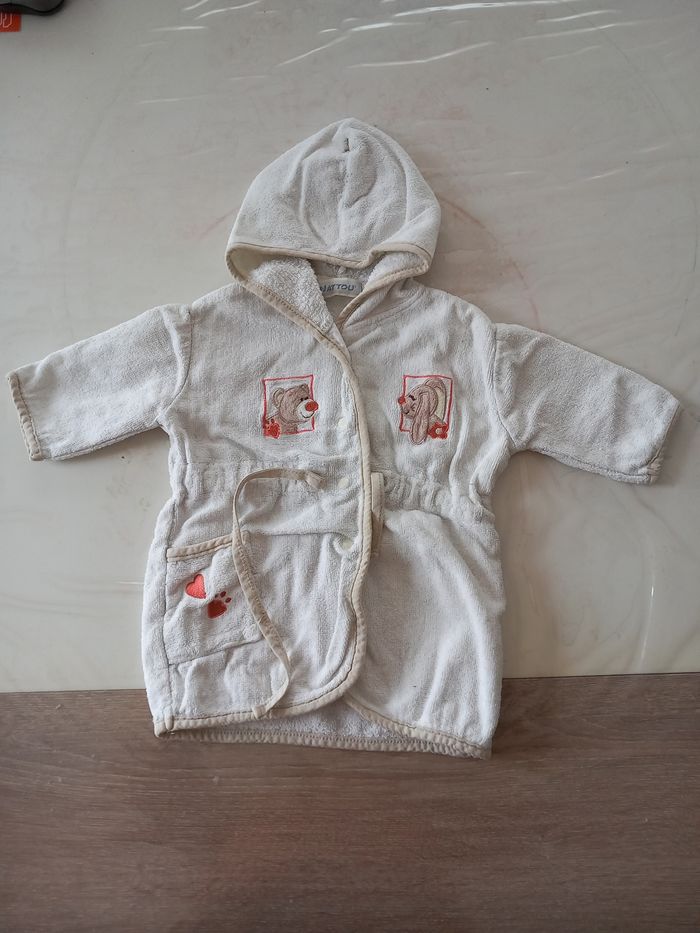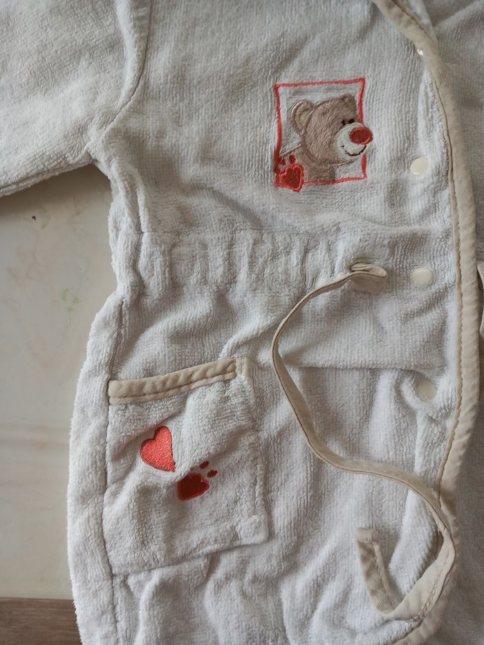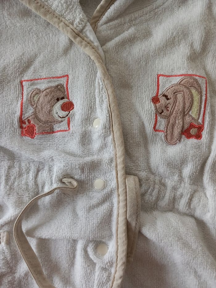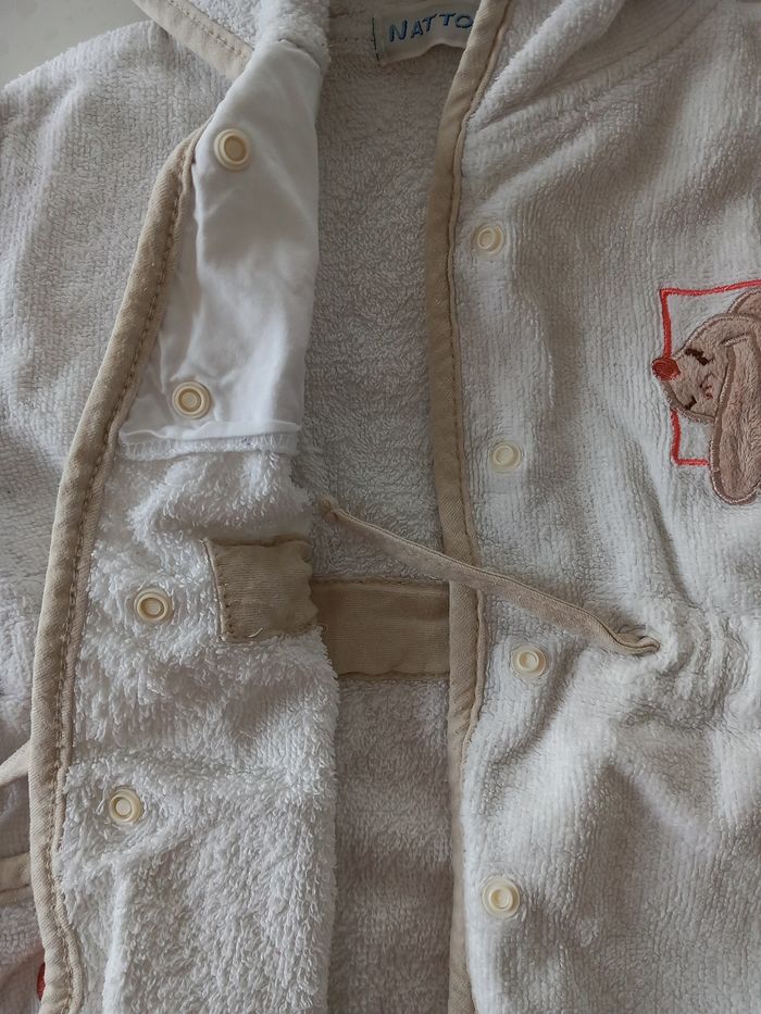 Peignoir avec Pressions et cordelette pour resserrer a la taille Avec capuche 1 poché Taille 6 mois