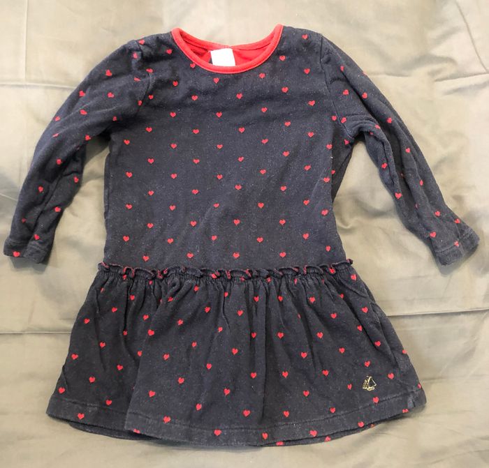Robe bleu marine Petit Bateau avec  cœurs 81 cm - photo numéro 1