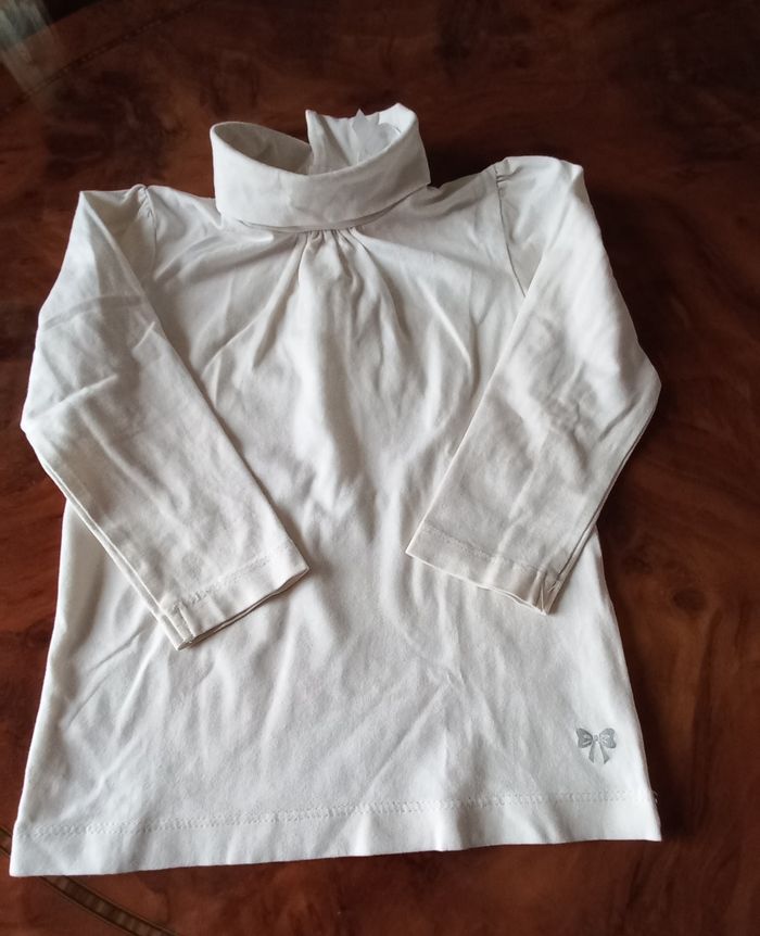 Sous pull col roulé fille 24 mois. Couleur crème bon état (traces d'usure générale). Marque Kidkanaï.