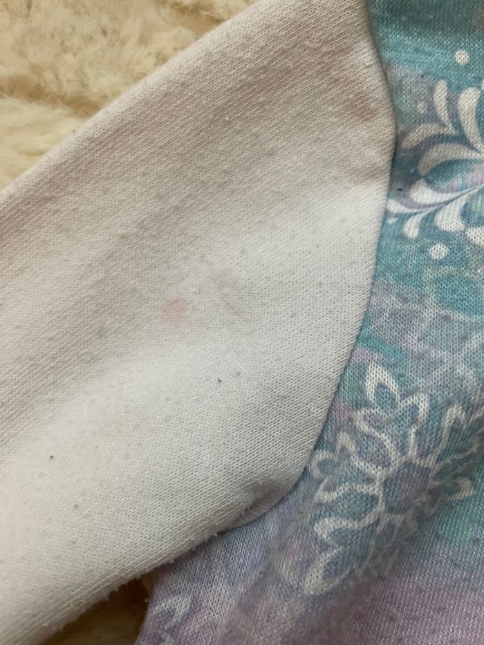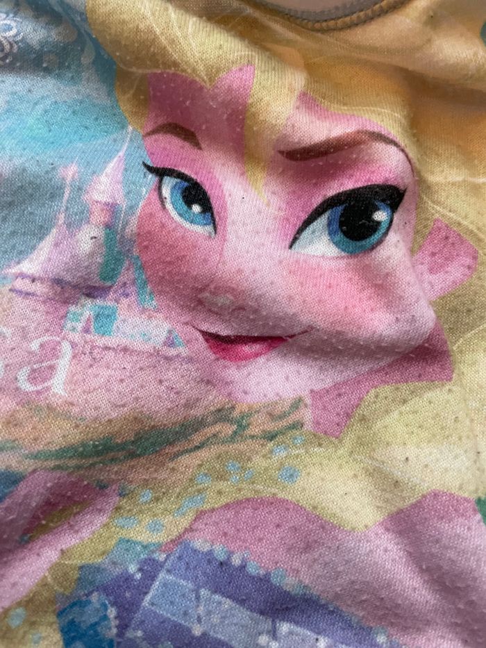 Sweat de la licence La Reine des neiges de Disney Taille 4 ans Présence d’une petite tâche sur la manche (voir photo) Occasion, bon état