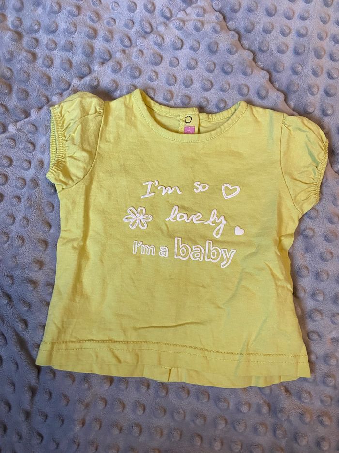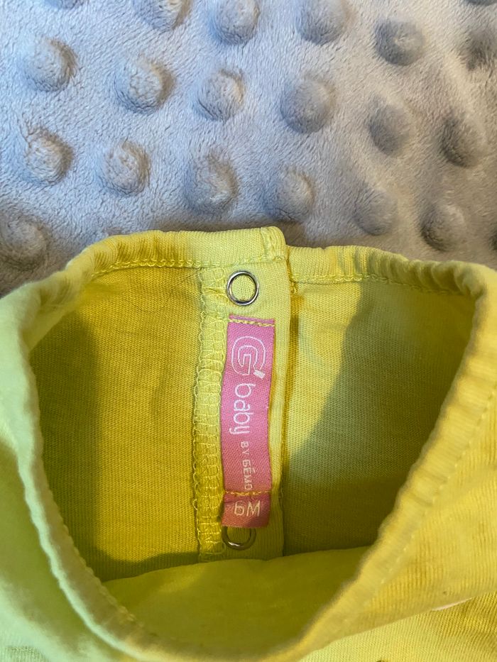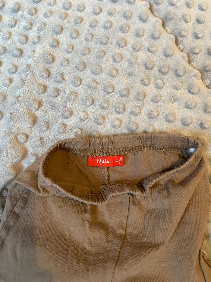 Ensemble t-shirt (jaune) + legging (marron) 6 mois T-shirt : Gémo Baby Legging : Tissaia Très peu porté, en très bon état 👍🏻 Tous les habits sont nettoyés avant l’envoi 😊 N’hésitez pas a faire un tour dans mon dressing pour profiter des réductions pour l’achat d’un lot 🌺