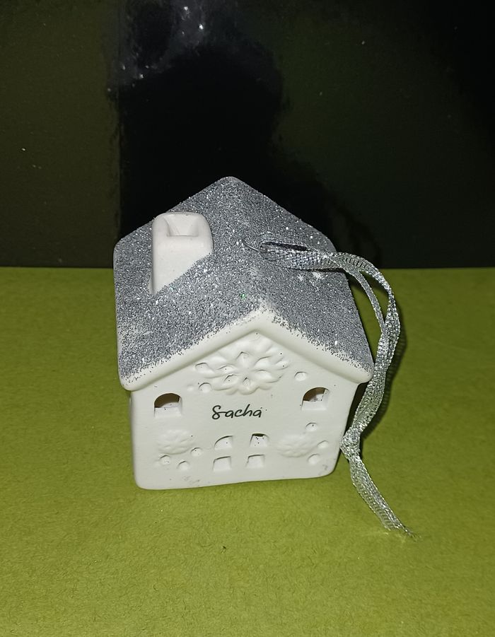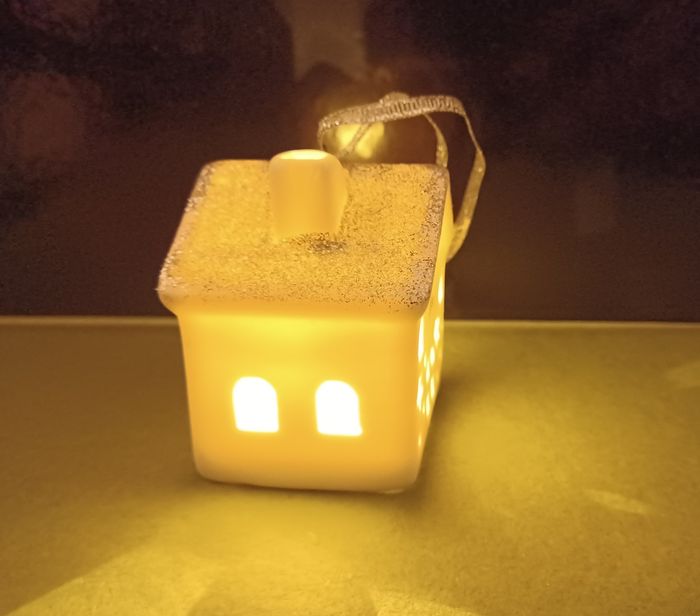 Petite lampe en céramique en forme de maison s'allume à l'intérieur grâce à un bouton situé ci-dessous la pile est déjà inclus