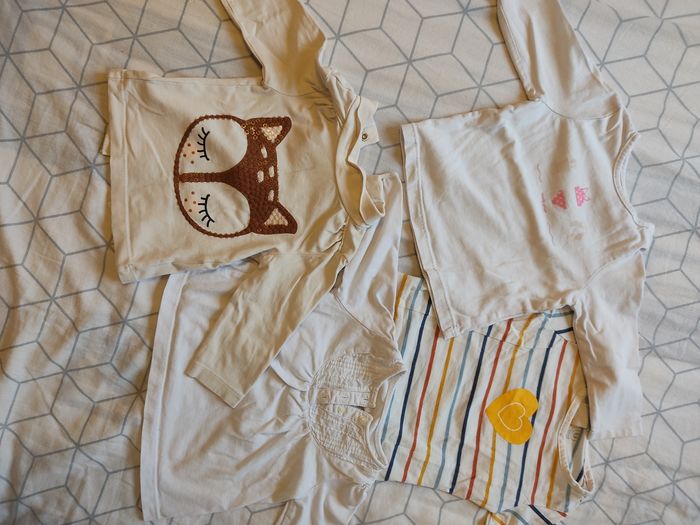 Lot de 4 t-shirt manches longues taille 6 mois. Peuvent être vendus séparément si besoin.