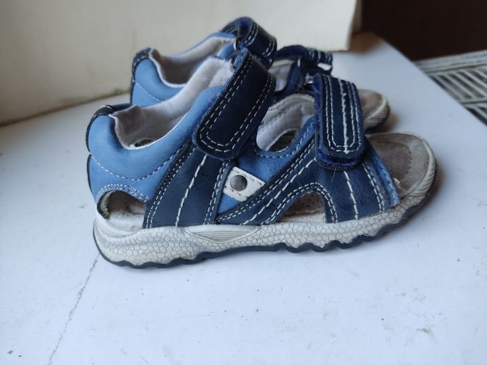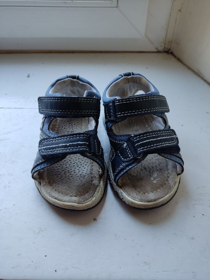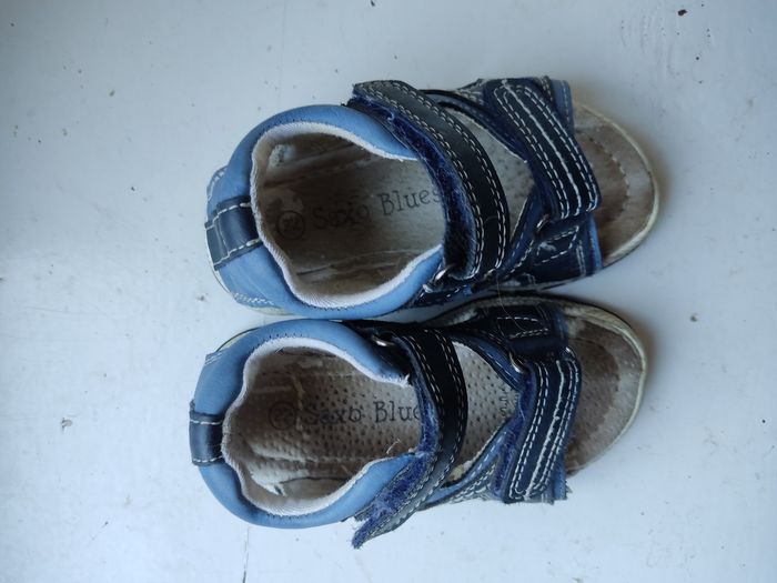 Sandales saxo blues en taille 22. La semelle est un peu décolorée mais les sandales sont en bon état.