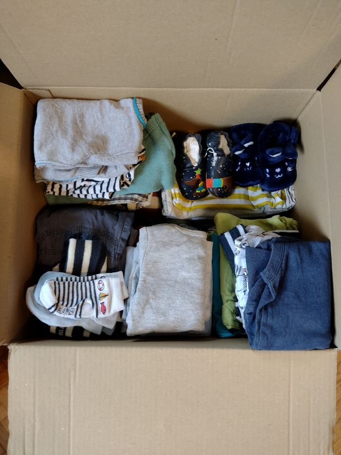13 bodies 2 combinaison short 8 t-shirt manches longues 1 chemise neuve 4 pulls 5 pantalon 1 polo 4 t-shirt 2 paires de chaussons 3 paires de chaussettes 1 bonnet Marque Pareil au même Sergent major Primark