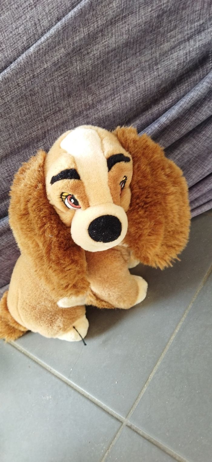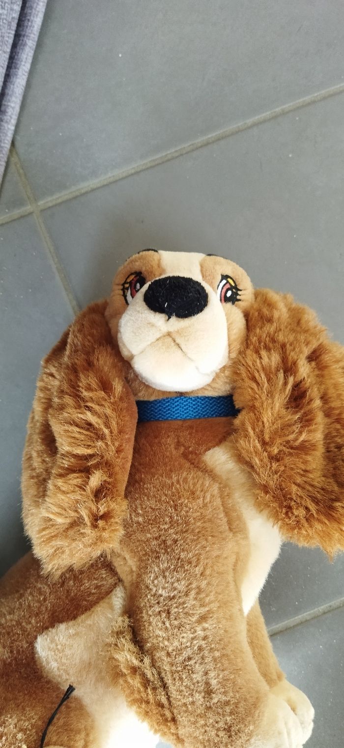 Lady cocker de la belle et le clochard Avec son collier 42 cm de long 28 cm de haut Étiquette Disney et jemini Très douce