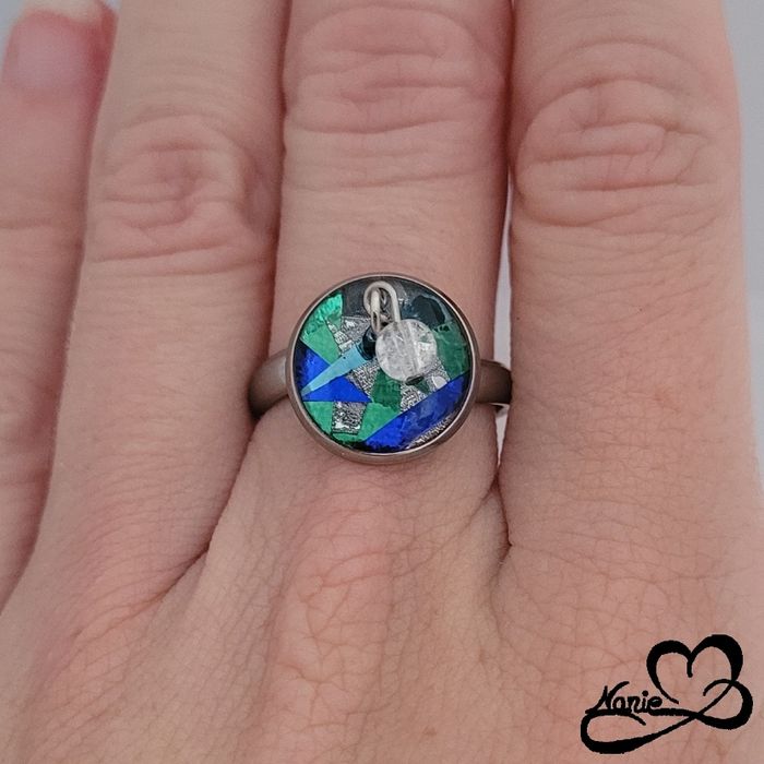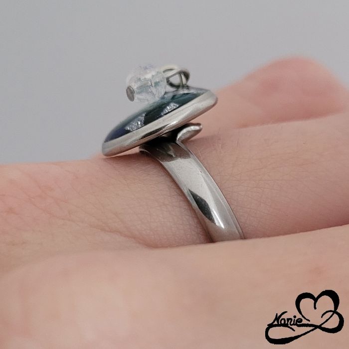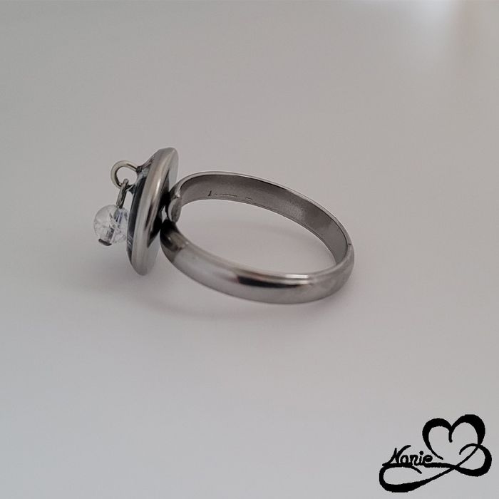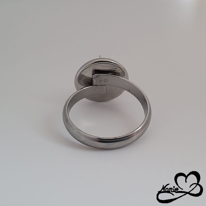 Bague ajustable ronde argentée avec une perle blanche - photo numéro 5