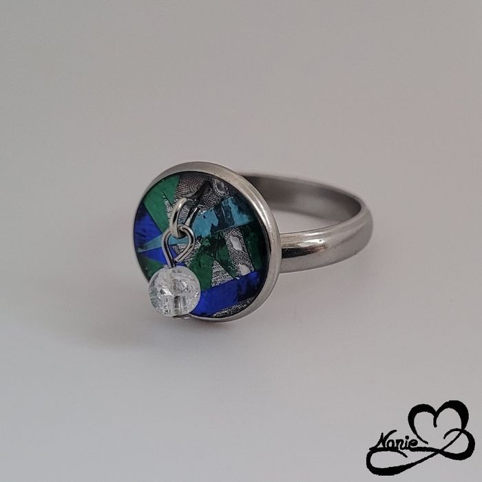 Bague ajustable ronde argentée avec une perle blanche - photo numéro 1