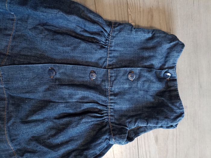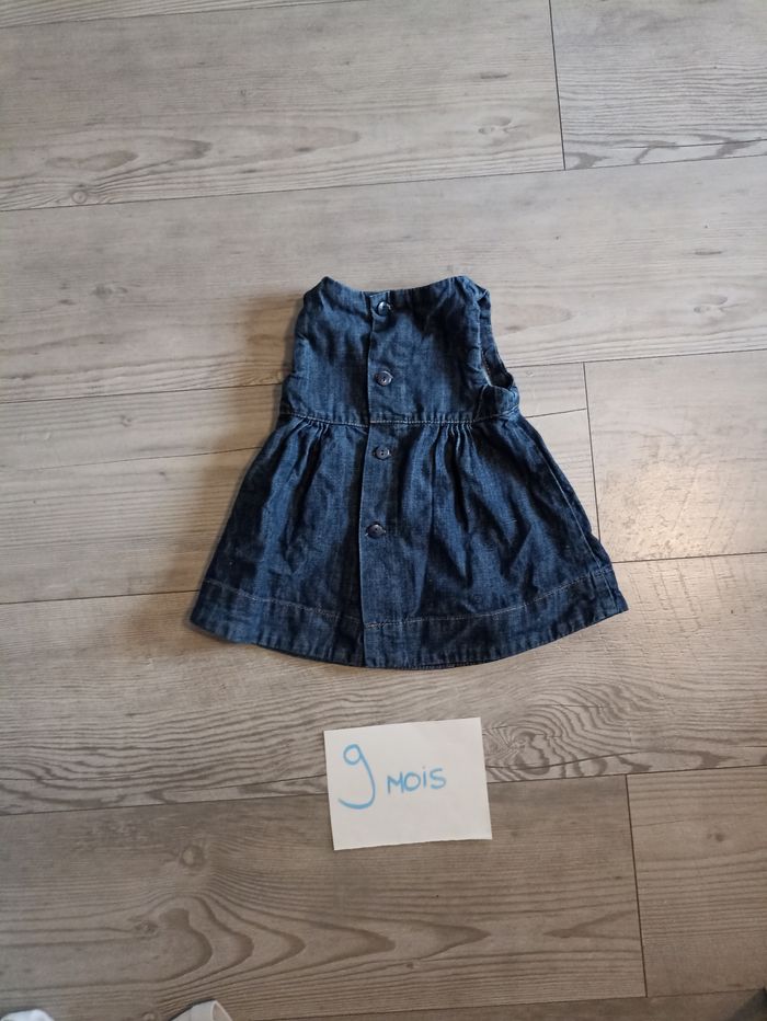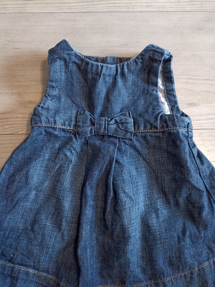 Très belle robe en jeans chic Avec petit noeud déco sur le devant Bouton a l'arrière j'ai d'autres petite robe en 9 12 mois n'hésitez pas à me contacter si besoin