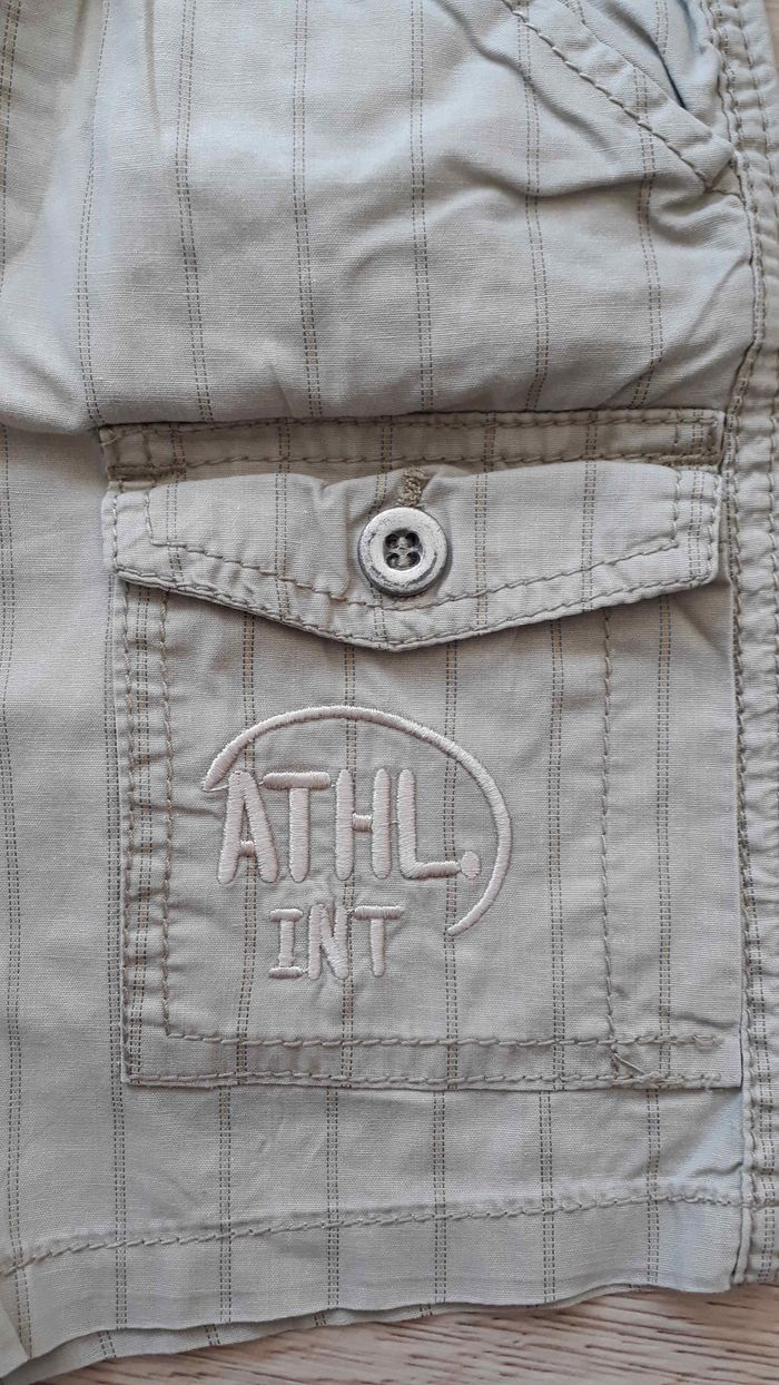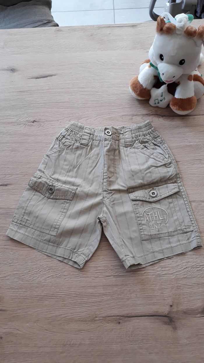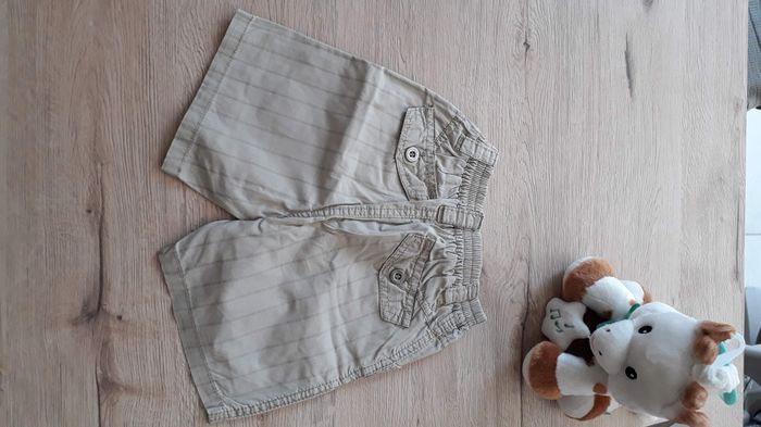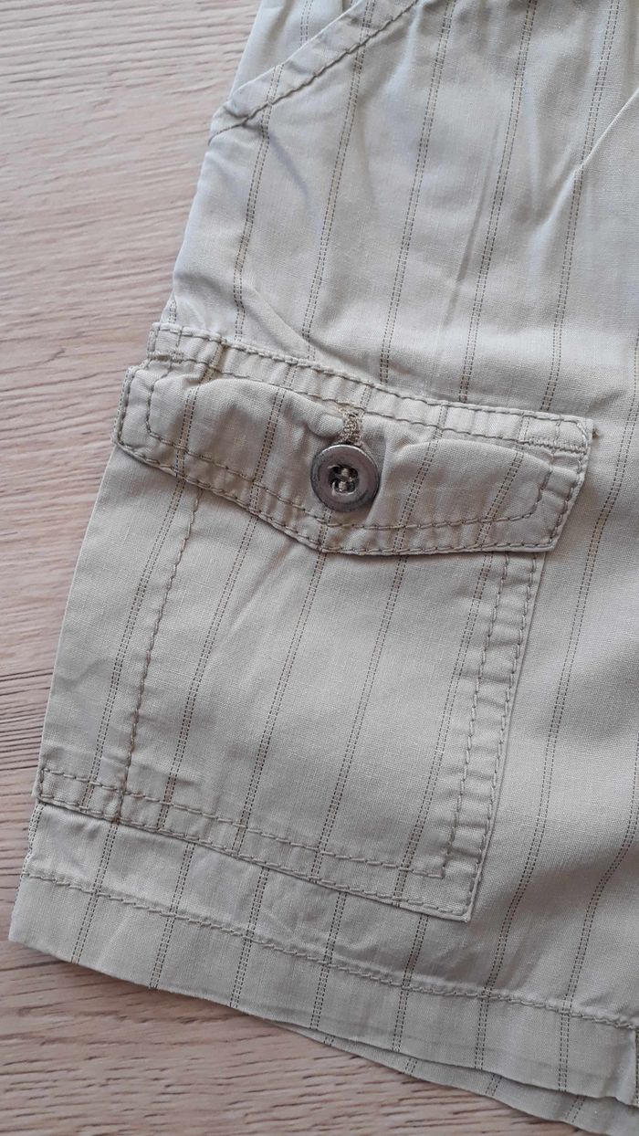 Short fin rayé 4 poches sur le devant dont 2 qui se ferme avec des boutons 2 fausse poches derrière Taille élastique