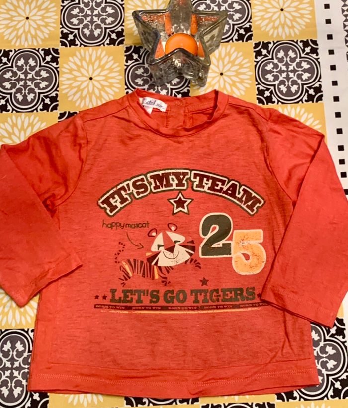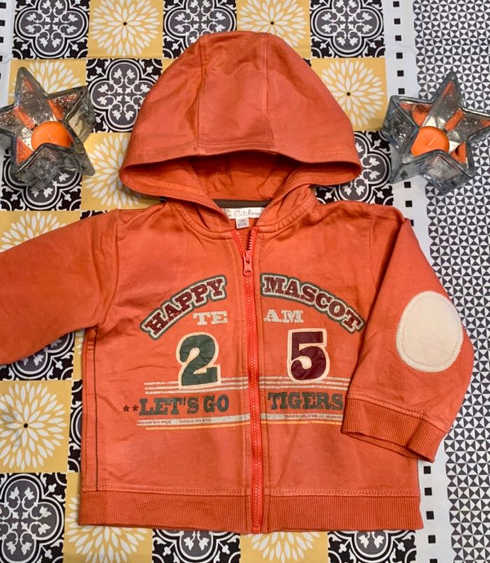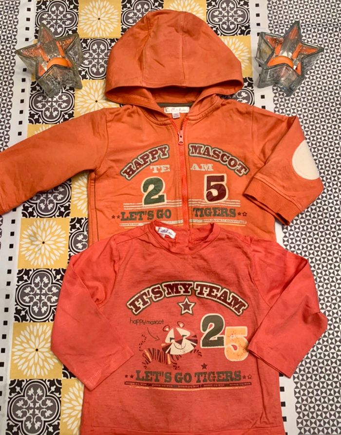 Superbe ensemble garçon Sweat à capuche zip et tee-shirt assortis. Beau orange, excellent état 18 mois