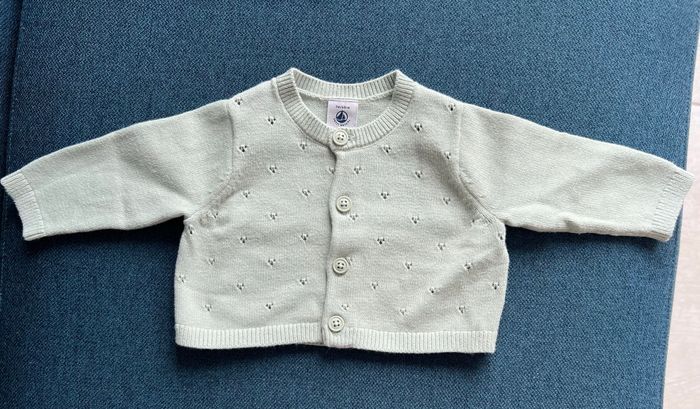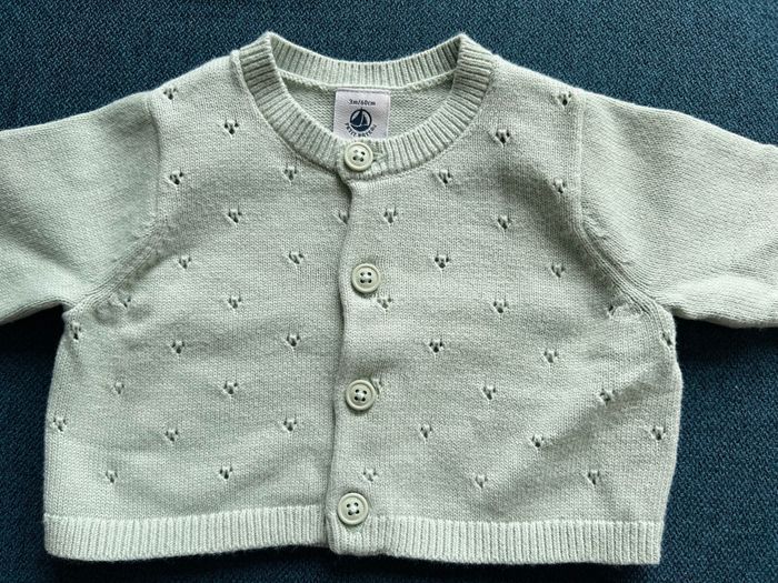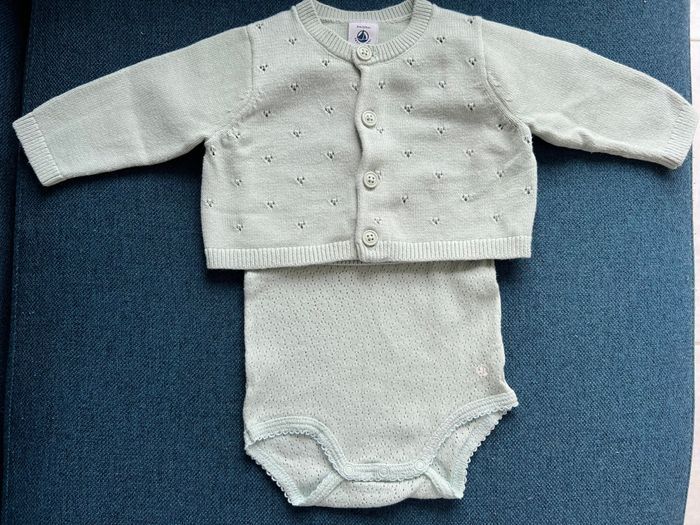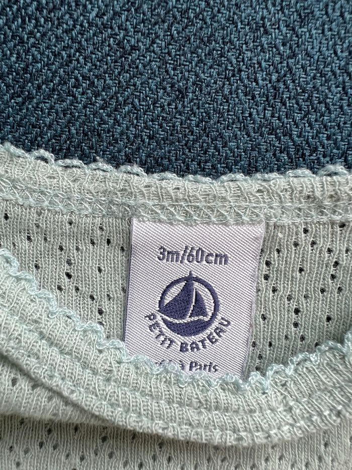 Gilet à bouton vert d’eau + body vert d’eau Petit Bateau, 3 mois (60 cm) Très bon état