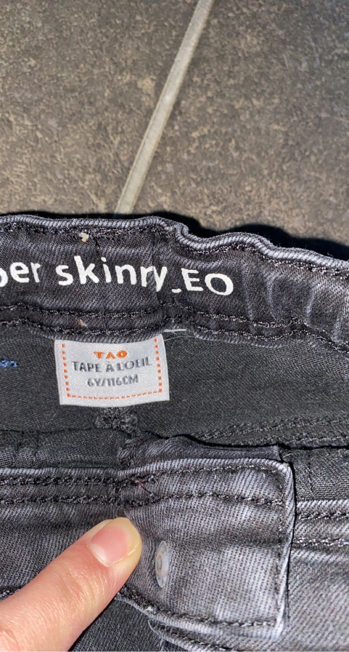 Jeans enfants style enfant jeans noir Détails légèrement déchirée ce n’es pas un défaut le pantalon a été acheter comme ça Jamais porter