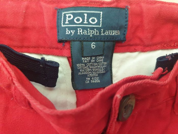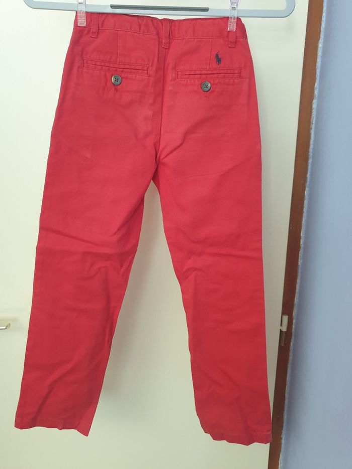 Pantalon uni; taille élastiquée réglable avec des boutons; fermeture avec bouton et zip. La taille 6 (US) sur le pantalon correspond à du 5 ans en France (vérifiable sur le site de la marque). Imperfection (4ème photo): usure du genou gauche. Prix neuf: 89,99 euros.
