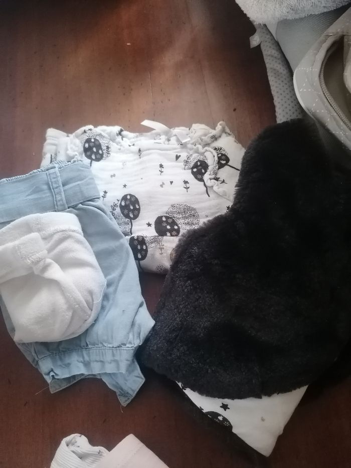 - 6 pyjamas - 3 bodys mc - 1 body ml - 1 body bretelles - 5 tenues - 1 manteau chaud