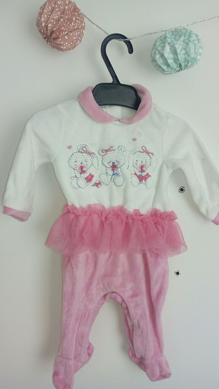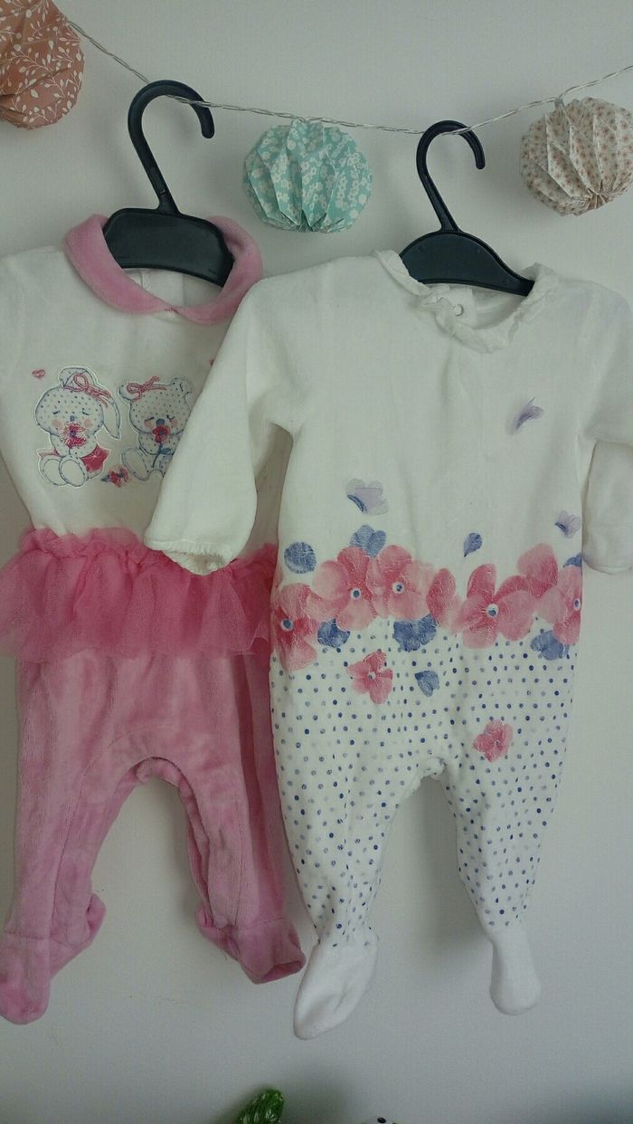 Lot 2 combinaisons hiver, en velours. Boutons à pression entre les jambes. Taille 1-3 mois, marque Prénatal. Très bon état.