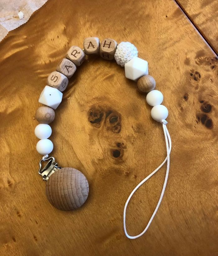 Attache tétine personnalisé en silicone ou en bois au souhait de l’acheteur Possibilité de créer avec d’autre modèle ( Marie , mickey, roi lion , minnie , thème noël plein d’autres) n’hésitez pas à me demander et regarder mon dressing. Une photo vous sera envoyée avant l’expédition pour vous ayez un aperçu du rendu. Tous les produits sont réalisés avec du materiel spécial conçu aux bébés , enfants.