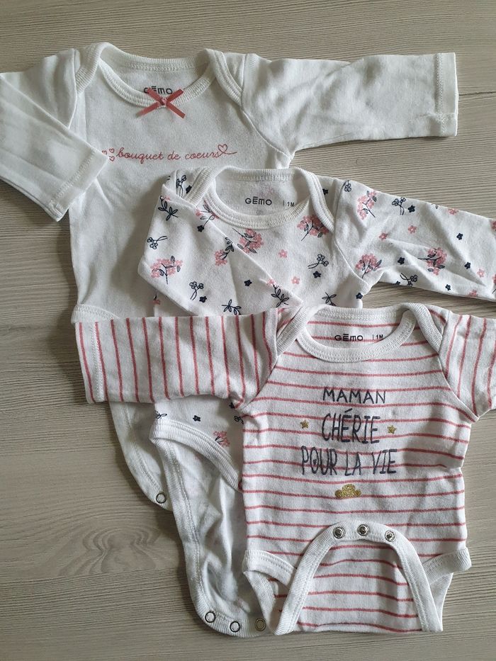 Ensemble de 3 bodys en très bon état. Taille 1 mois.