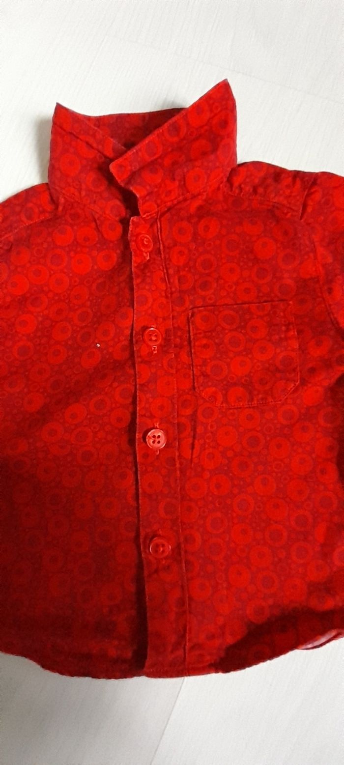 Chemise T 6 mois Marque CLAYEUX Couleur rouge et bordeau Manches longues Attache central boutons Très très bon état