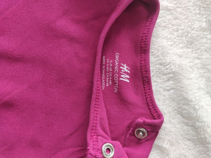 Body manches longues. Boutons pression sur l'épaule gauche + entre-jambes. Un petit trou sous le bouton pression de gauche.