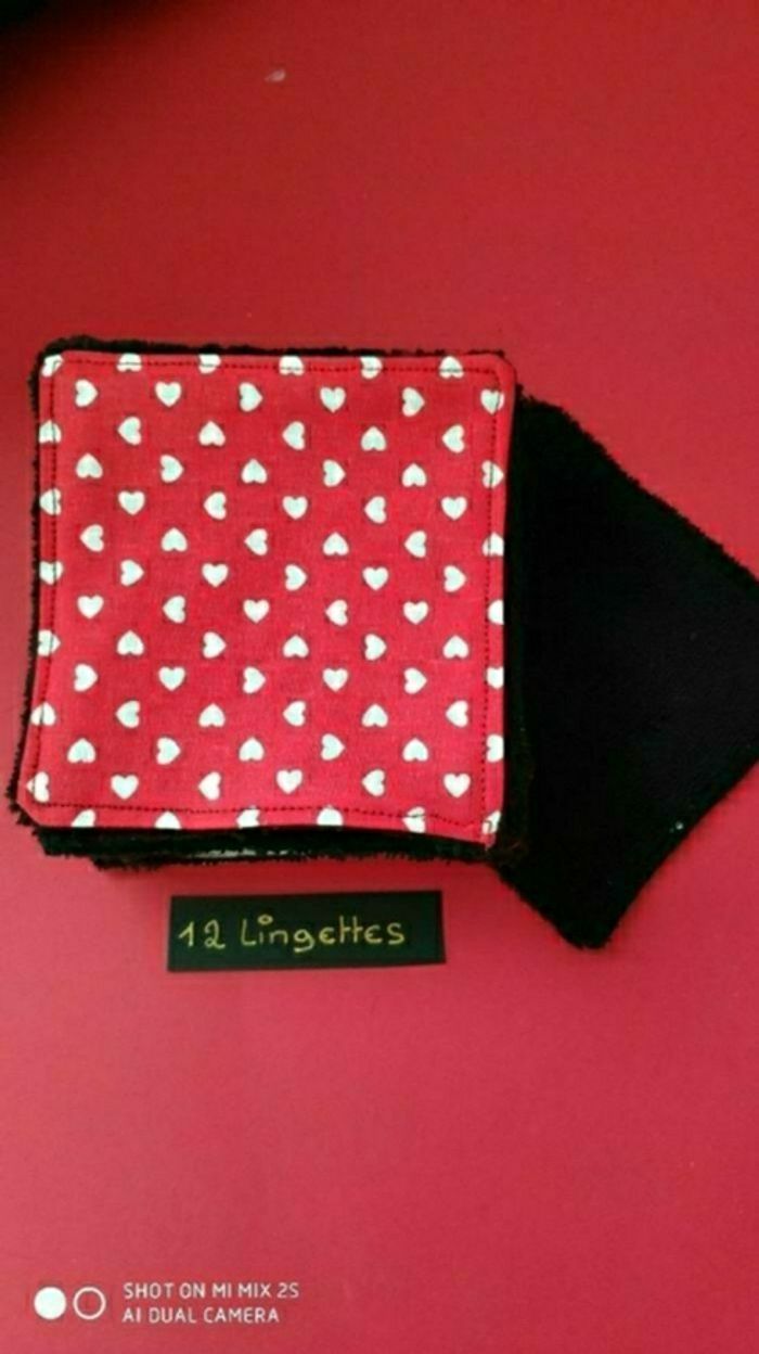 Tissu eko-tex français et éponge bambou noir, 10 X10 cm, pour bébé et démaquillante pour les mamans 😄..