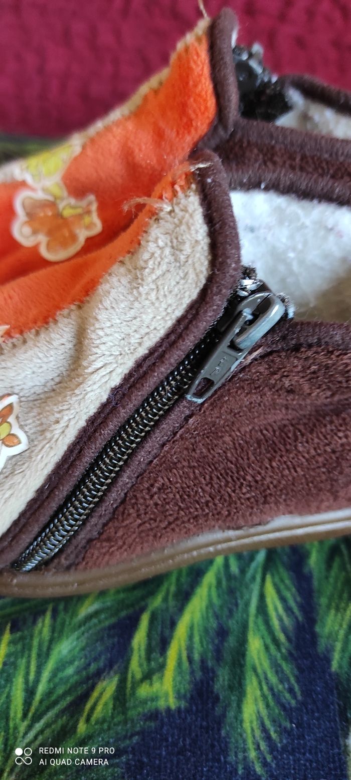 Pantoufle montante à fermeture très chaude, fourré à l'intérieur, bonne état porté quelques fois, pointure 18.