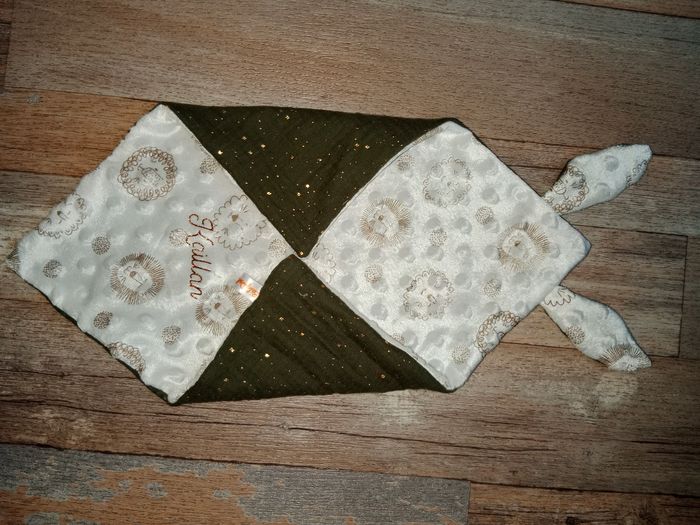 Doudou plat en minky et tissu gaz pailleté. personnalisable du prénom 🤗 N'hésitez pas à me contacter pour plus d'informations. Made in France 🇨🇵 handmade by babydolls 🦁