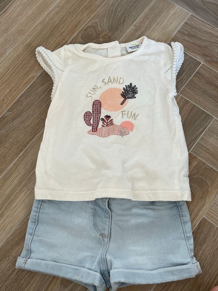 Une tenue blanc zara 9-12 mois neuve jms portee Une tenue short en jean réglable à la taille et tee shirt tape à l oeil 12 mois Une blouse gaze de coton body intégré tape à l oeil 12 mois Barboteuse kiabi légère bleue ciel 12 mois Robe coton rose absorba 12 mois Tenue kiabi blouse et legging 12 mois 2 blouses okaidi poru la rose et tape a l œil pour la bleue 12 mois Tee shirt tape à l oeil neuf 9 mois