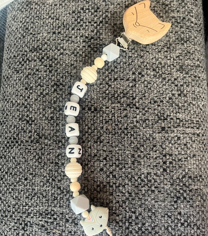 Attache tétine personnalisé en silicone ou en bois au souhait de l’acheteur Possibilité de créer avec d’autre modèle ( Marie , mickey, roi lion , minnie , thème noël plein d’autres) n’hésitez pas à me demander et regarder mon dressing. Une photo vous sera envoyée avant l’expédition pour vous ayez un aperçu du rendu. Tous les produits sont réalisés avec du materiel spécial conçu aux bébés , enfants.