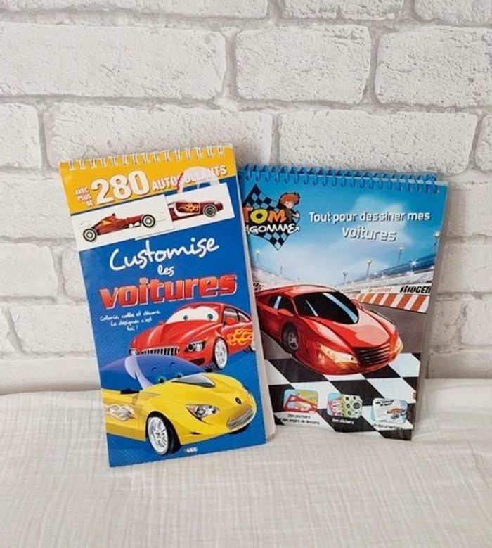 Lot de 2 livres avec pochoir et autocollant pour dessiner des voitures de sport. Remise sur les lots