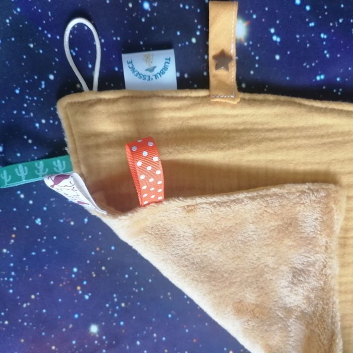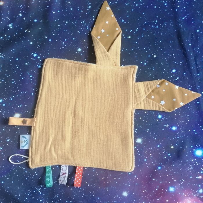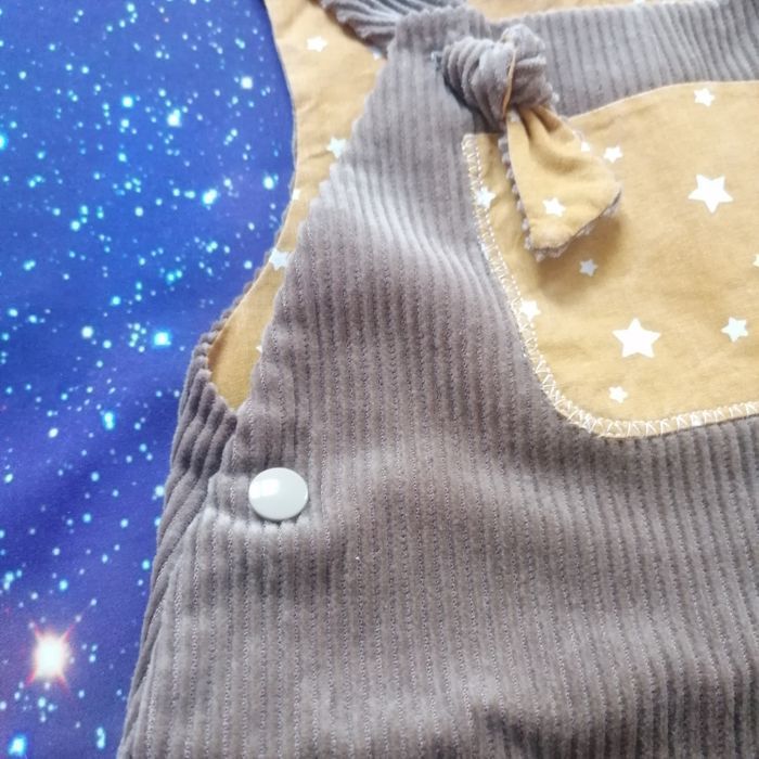La box bébé des étoiles Turbul'Essence ✨ est une création faite main en Bretagne unique et originale, elle comprend : - Une salopette évolutive de 3 à 6 mois avec des boutons pressions au niveau de l'entre jambes pour faciliter le change. Tissus certifiés Oeko TeX (sans traitement chimique) velours à l'extérieur et coton à l'intérieur. - Un doudou "oreilles de lapin" avec des étiquettes pour stimuler le toucher de bébé, avec un attache tétine. - En bonus : si vous le désirez, vous recevrez une méditation guidée, enregistrée par moi-même (je suis aussi énergéticienne) pour vous accompagner dans votre quotidien de parent et apporter un soutien énergétique à votre enfant pour le sommeil.