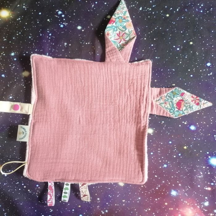 La box bébé des étoiles Turbul'Essence ✨ est une création faite main en Bretagne unique et originale, elle comprend : - Une salopette évolutive de 3 à 6 mois avec des boutons pressions au niveau de l'entre jambes pour faciliter le change. Tissus certifiés Oeko TeX (sans traitement chimique) velours à l'extérieur et coton à l'intérieur. - Un doudou "oreilles de lapin" avec des étiquettes pour stimuler le toucher de bébé, avec un attache tétine. - En bonus : si vous le désirez, vous recevrez une méditation guidée, enregistrée par moi-même (je suis aussi énergéticienne) pour vous accompagner dans votre quotidien de parent et apporter un soutien énergétique à votre enfant pour le sommeil.