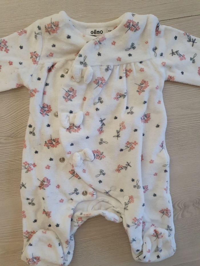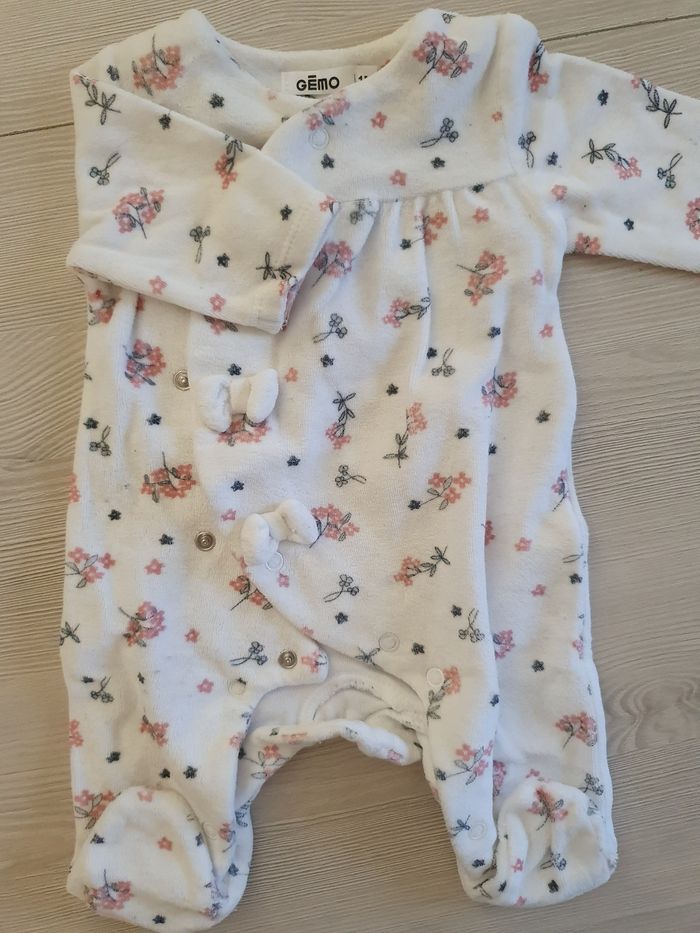Pyjama velours en parfait état. Taille 1 mois avec pressions à l'avant.