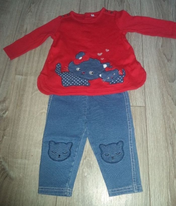 Haut manches longues rouge + legging jean stretch 6 mois