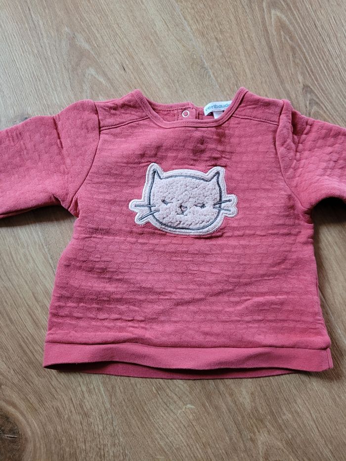 Sweat 9 mois Rose avec dessin de chat Pas de bouloches en très bon etat