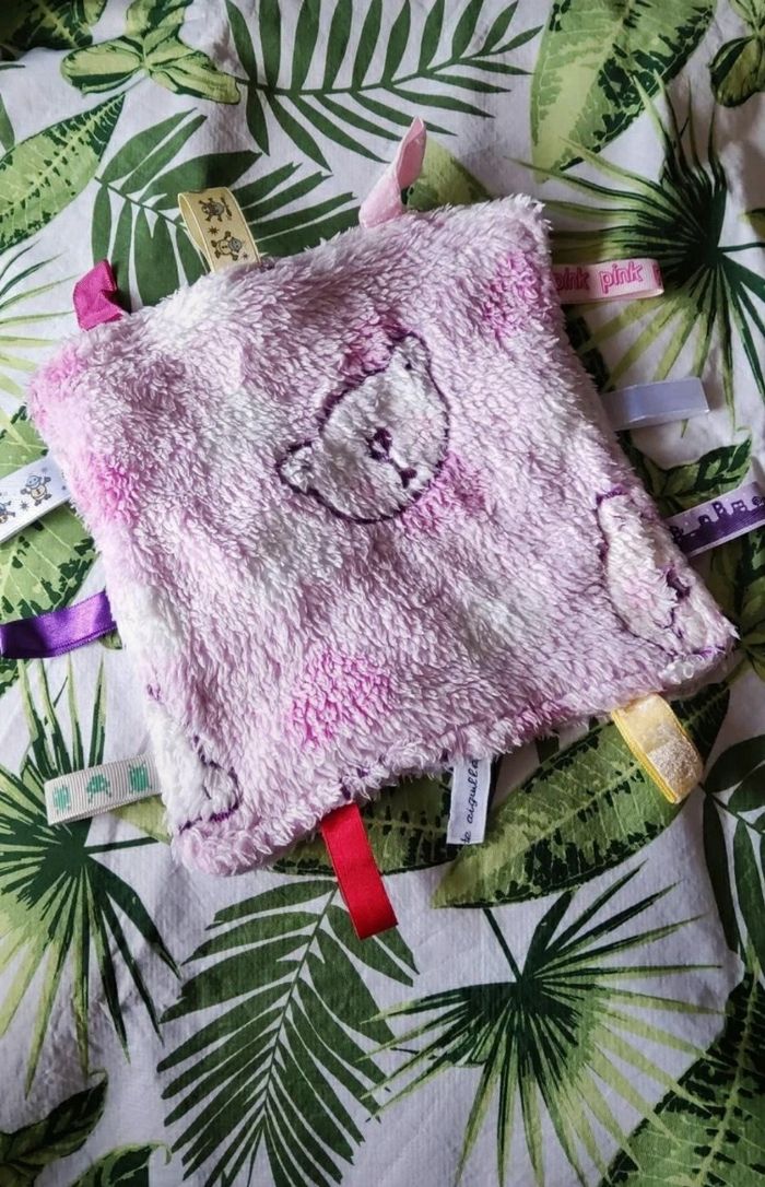 Bonjour, Je vends ce doudou plat avec des étiquettes en bon état, a été fait main