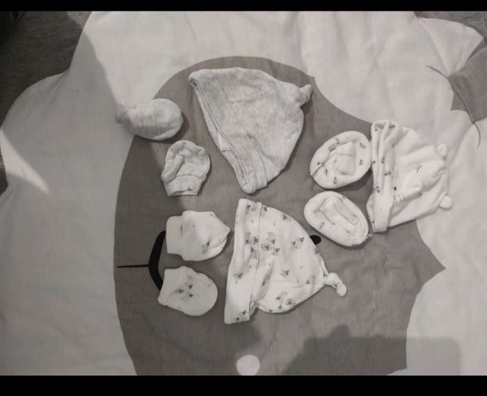 3 bonnets 2 paires de mouffles 1 paires de chaussons