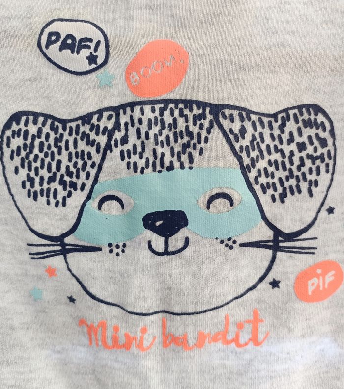 Pyjama de la marque Petit Béguin unisexe "mini bandit" Deux petites poches devant. Très bon état. 3 mois , 62 cm.