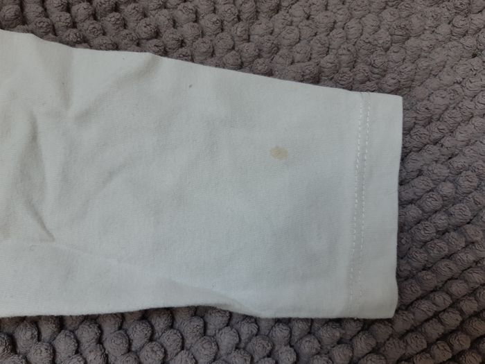 Tâché dans le bas du t-shirt et sur une manche, voir sur photos.