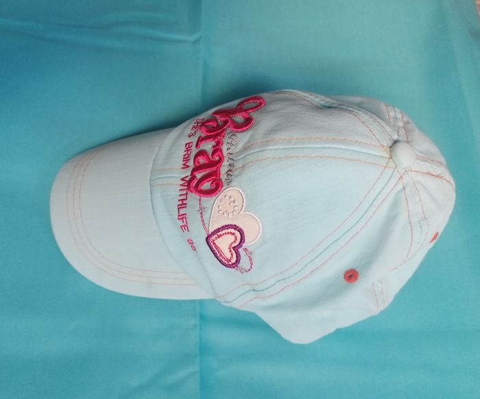 Casquette filles, 52cm Bleu clair, fermeture derrière scratches. 100%coton. Jamais porté 4€