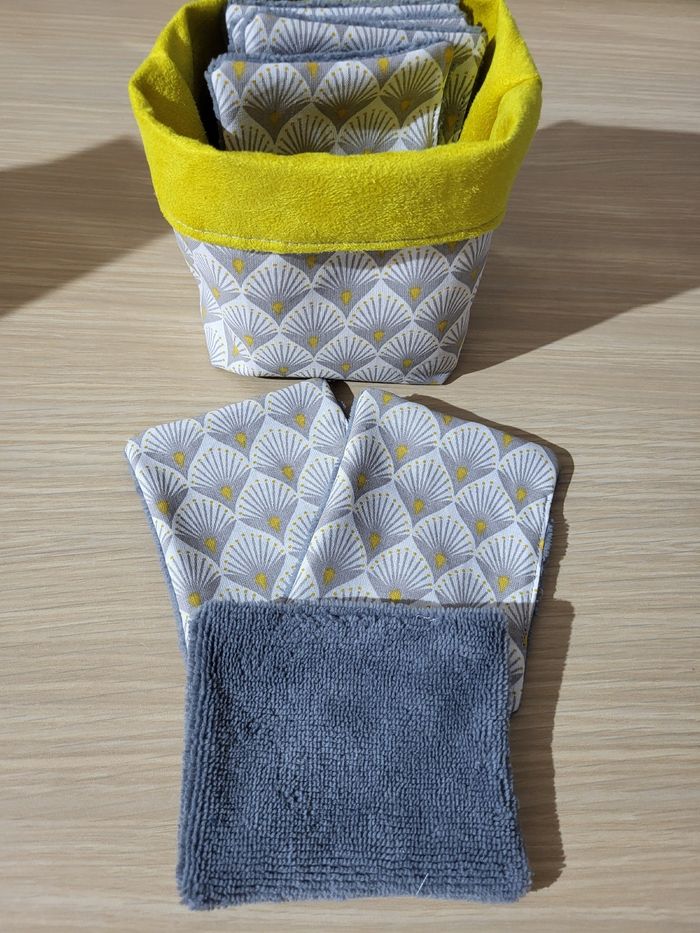 panier avec 7 lingettes en tissu oeko tex et eponge de bambou
